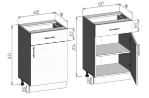 Размеры: В. 834 (860 общая.) мм, Г. 480 (600 общая) мм, Ш. 600 мм.