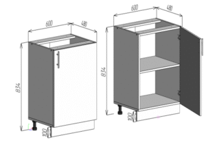 Размеры: В. 834 (860 общая.) мм, Г. 480 (600 общая) мм, Ш. 600 мм.
