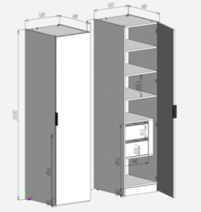 Размеры: В. 2000 мм, Г. 500 мм, Ш. 500 мм.